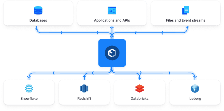Reliable pipelines from databases, apps, and files into Iceberg and analytics engines.