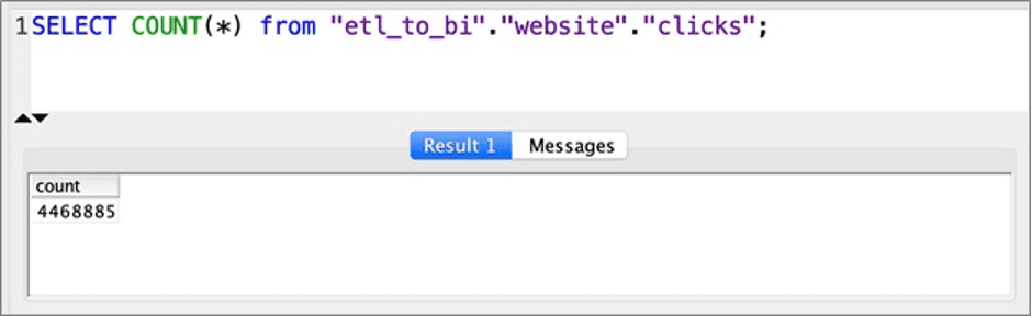 The “clicks” table is now available for querying by BI users, and, as the table is updated with new data in the producer cluster, it’s immediately available in the consumer cluster as well.