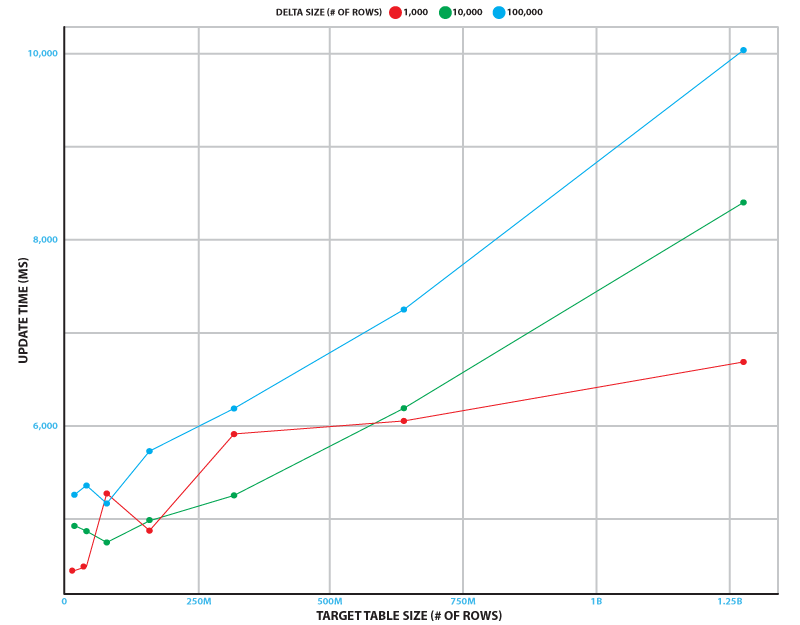 This shows that the update process can keep up with source database tables that have 1 billion rows and 10,000 inserts, updates, and deletes per second.