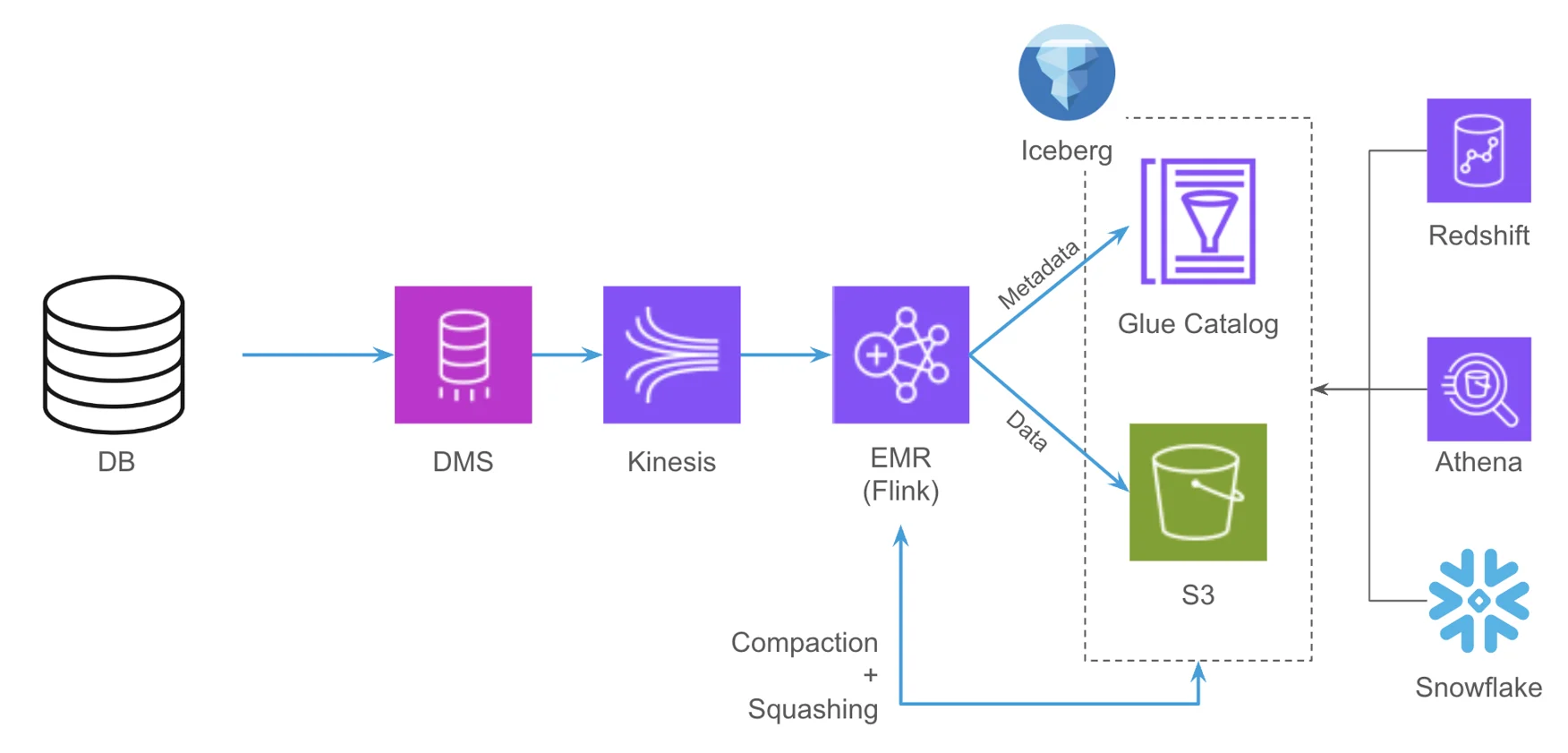 Apache Iceberg unifies data lakes and warehouses by creating a combined storage layer using an open data format supported by AWS and Snowflake. This enables us to significantly enhance data freshness: reducing latency from minutes to mere seconds.